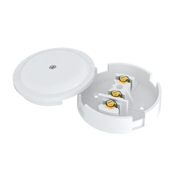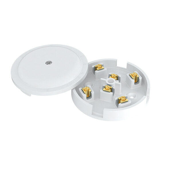 20 Amp, 4 Terminal 58mm Junction Box Material: Urea with Brass Connectors Colour: White Compliant with BS 60670