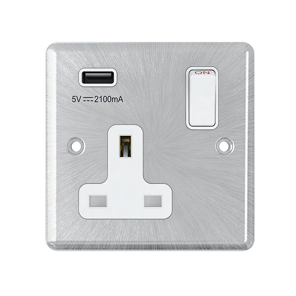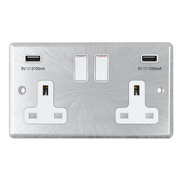 13A 2 Gang S/Socket with 3.1 Amp USB Outlet, SP