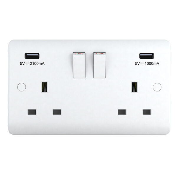 13A 2 Gang S/Socket with 3.1 Amp USB Outlet, SP
