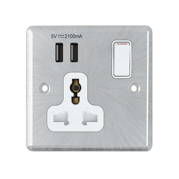 Categories Multi Function Sockets & USB Outlets, Satin Chrome, Switches & Sockets