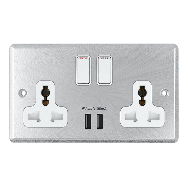 Categories Multi Function Sockets & USB Outlets, Satin Chrome, Switches & Sockets
