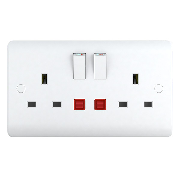 HomeSwitches & SocketsWhite MouldedEuro Victor 13 Amp 2 Gang Switched Socket DP with Neon