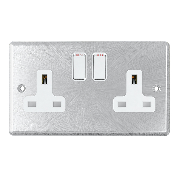 HomeSwitches & SocketsDecorative ScrewedSatin Chrome13 Amp Socket Outlets 13 Amp 2 Gang Switched Socket SP