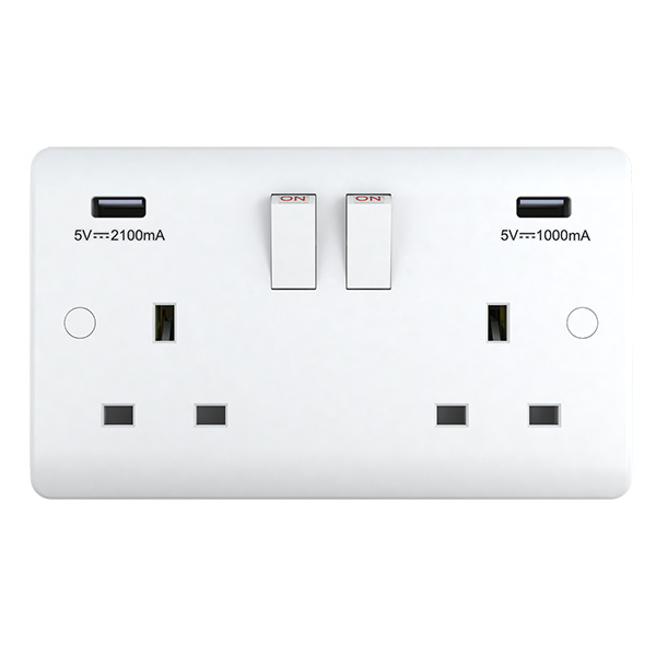 13A 2 Gang S/Socket with 2.4 Amp USB Outlet, SP
