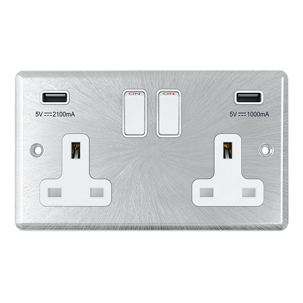 Categories 13 Amp Socket with USB outlet, Satin Chrome, Switches & Sockets